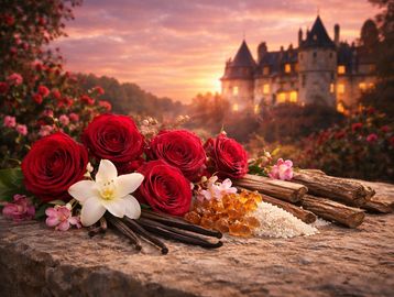"Chateau de Amore" exudes an enchanting bouquet of romantic and timeless scents, featuring notes of velvety roses in full bloom, intertwined with the warmth of aged oak and a hint of vanilla. This fragrance invites you into a world of passion and elegance, with its delicate floral undertones and the rich, comforting embrace of woody and sweet nuances, capturing the essence of a love story set in a picturesque chateau.