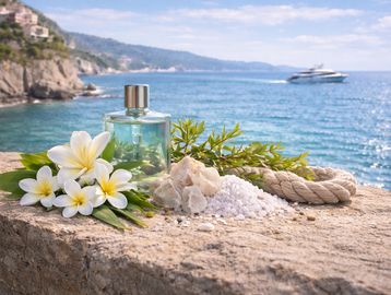 A symphony of Mediterranean allure. It's a sun-kissed blend of salty sea breeze, fragrant blooming flowers, and zesty citrus groves. The warm, sunbaked sand mingles with hints of sunscreen and coconut oil, creating an unmistakable coastal aroma that's simultaneously sophisticated and laid-back, encapsulating the essence of this glamorous French Riviera destination.