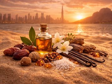 Capturing the deep richness of Dubai through a blend of Bay rum, dried fruit notes and spicy nutmeg intertwine with minty patchouli, sweet jasmine and golden amber nuances. Resinous cedarwood, warm musk and creamy vanilla nuances blended to enhance and complete this sensory trip to the Sands of Dubai