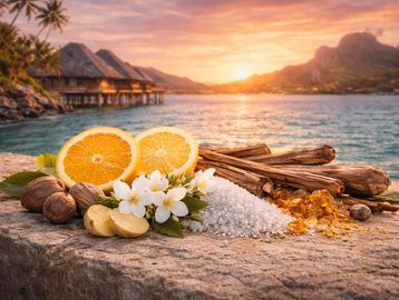 Perfect tone, nutmeg, orange, lemon citrus, spicy leather with sandalwood, ginger, amber and floral jasmine come together to create the wonderful aromatic representation of true Tahitian beauty.